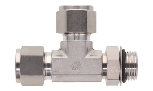 TRS Adjustable Male SAE ORB Run Tee - Dual Ferrule Tube Fitting